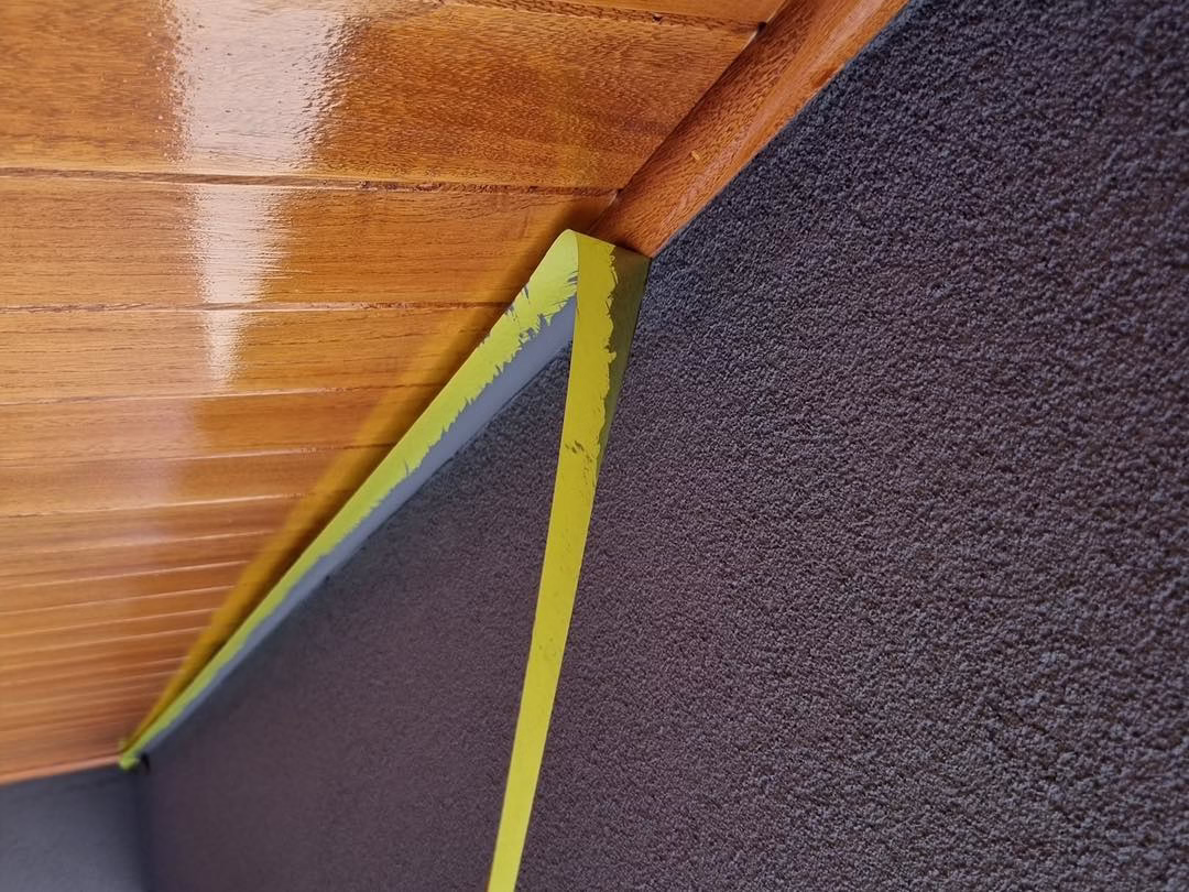 This project required meticulous surface preparation to achieve a smooth, cohesive finish. Our team carefully primed and painted every surface, ensuring sharp, clean lines that enhance the home’s modern aesthetic while preserving its natural timber accents.